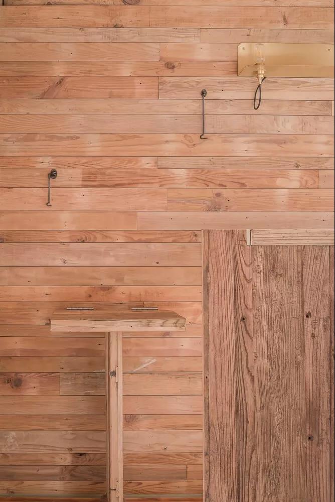 墙上还有个小细节,这些挂钩是为了听音乐时人太多,而能方便把桌子翻叠上去,腾出空间。