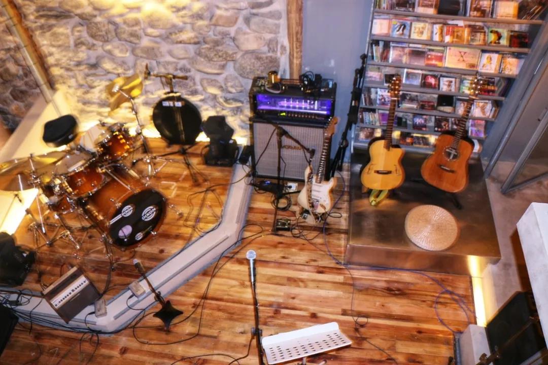 当然餐厅里少不了音乐的元素。一楼里规划了舞台区,用餐座位以舞台为中心展开,并各自独立。舞台区采用低矮的墙面设计,借此更自然地拉近顾客与音乐的距离。