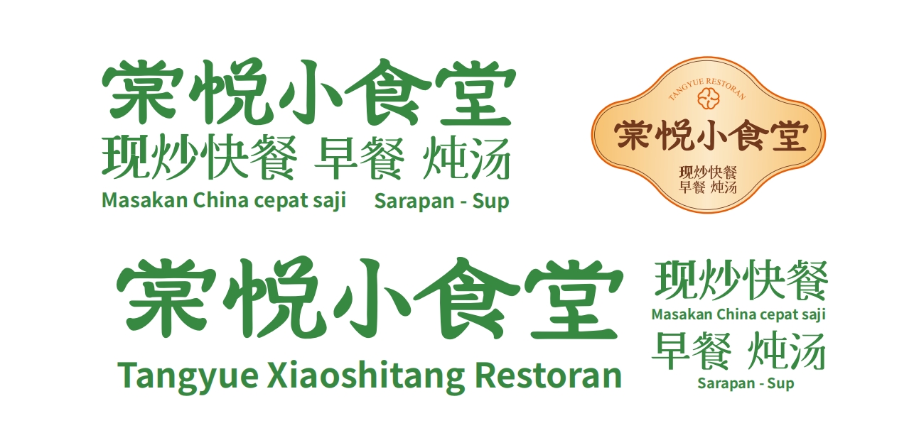 设计逻辑:聚焦“棠悦小食堂”字体设计,以书法笔触融合现代无衬线体,平衡“传统非遗”与“快餐便捷”的双重属性。