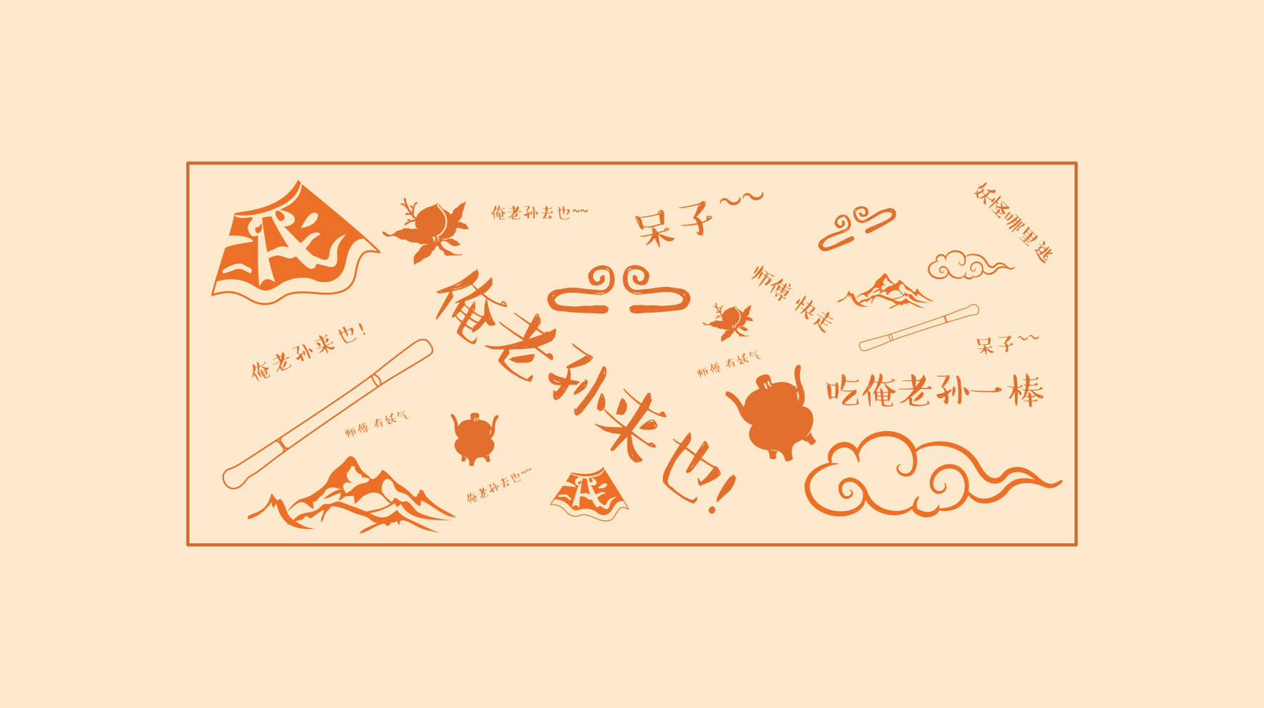 悟烘整体VI设计,仅仅围绕悟空元素展开。以紧箍咒的元素比喻对出品过程的严格把控,以炼丹炉比喻对火候的把握;以七十二变元素比喻产品的丰富多样。