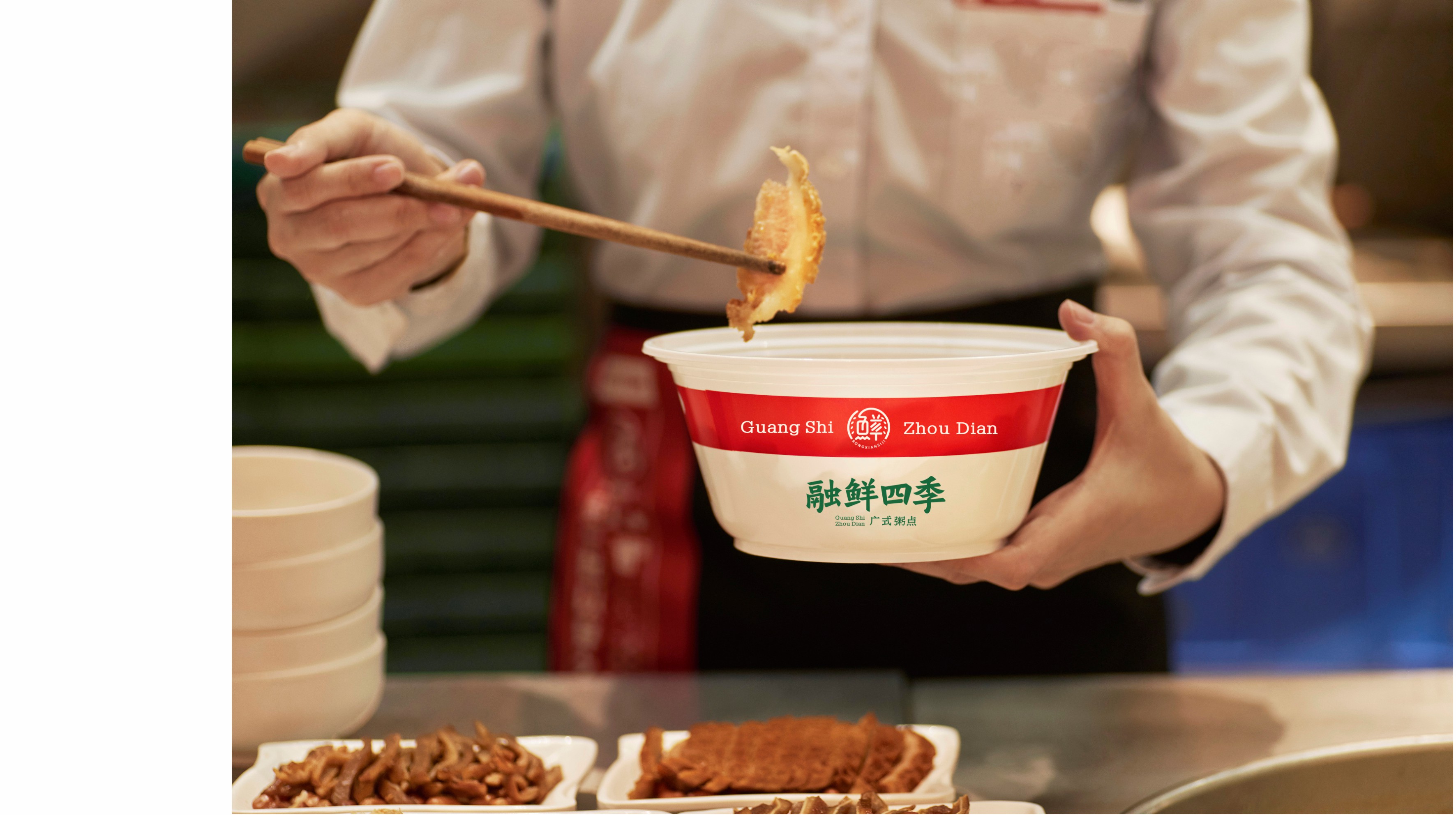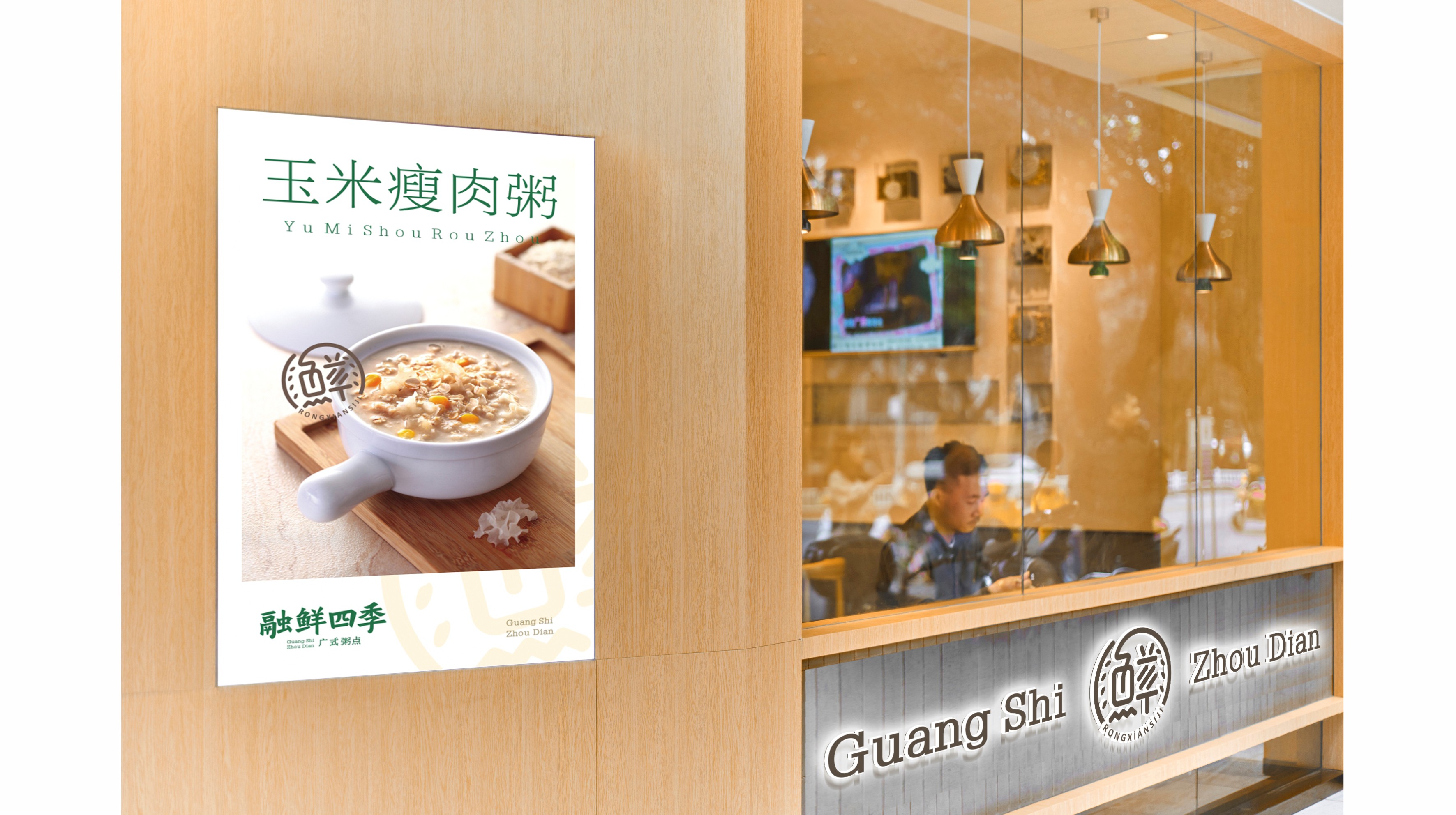 融鲜四季,品牌着重突出食材的新鲜选取和不同季节特供当季食材粥点,观者记忆直接,视觉看过的一秒后,会出现美好的画面感。